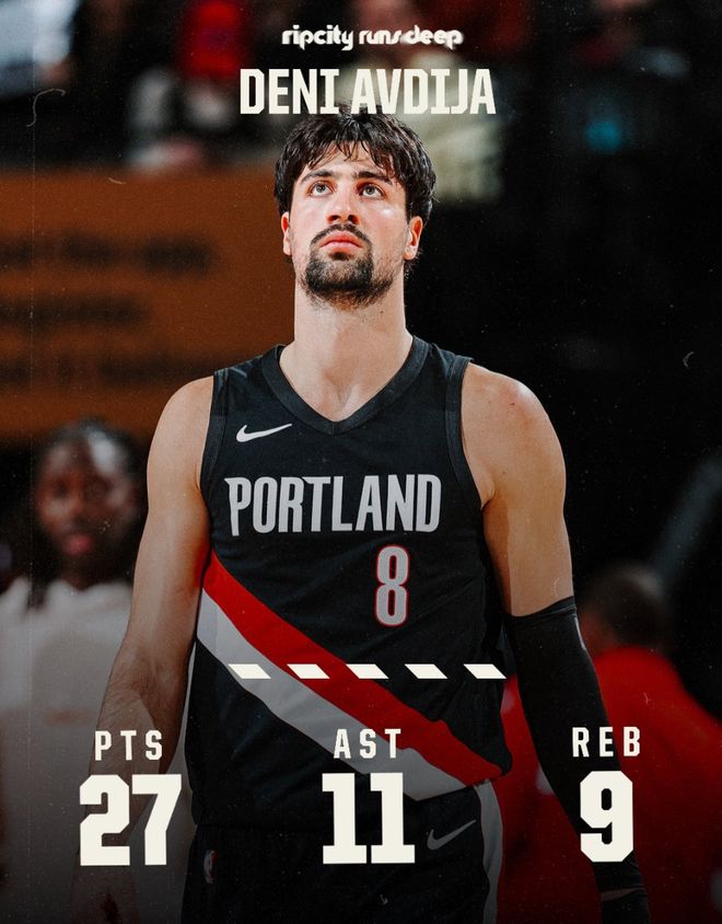 本赛季阿夫迪亚的得分、助攻都已经挤进联盟前十行列,开拓者以他为核心没有任何问题。