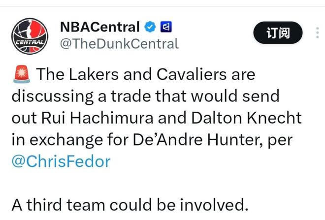 北京时间1月31日,据骑士记者费多尔报道,湖人队正寻求补强锋线位置,目前已与骑士队开启谈判,商讨引进亨特的相关交易方案。