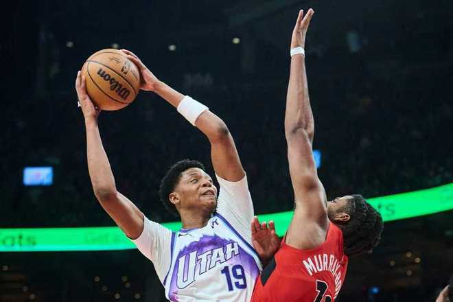 数据统计 猛龙:巴雷特21分6板4助、马穆凯拉什维利20分6板、英格拉姆19分5板4助、奎克利17分5板4助4断、巴恩斯14分9板4助2断4帽。 爵士:马尔卡宁27分11板2助、科利尔19分4板7助2断、努尔基奇11分13板1助3帽、威廉姆斯10分2板。 比赛回顾 猛龙过去两场连输尼克斯与魔术遭遇2连败,爵士过去5场遭遇5连败。本场猛龙缺少珀尔特尔,爵士缺少凯斯勒、乔治、哈克莱斯、尼昂。首节双方持续紧咬比分缠斗,猛龙凭借团队攻势保持微弱领先优势,首节爵士25中8不足4成准星,其中三分13中4,马尔卡宁6+3与贝利5中0得到0分;猛龙23中9也不足4成准星,其中三分14中7表现出色,英格拉姆6中1仅得到2分与巴恩斯6分、马穆2记三分得到8分,首节结束猛龙28-23领先爵士。