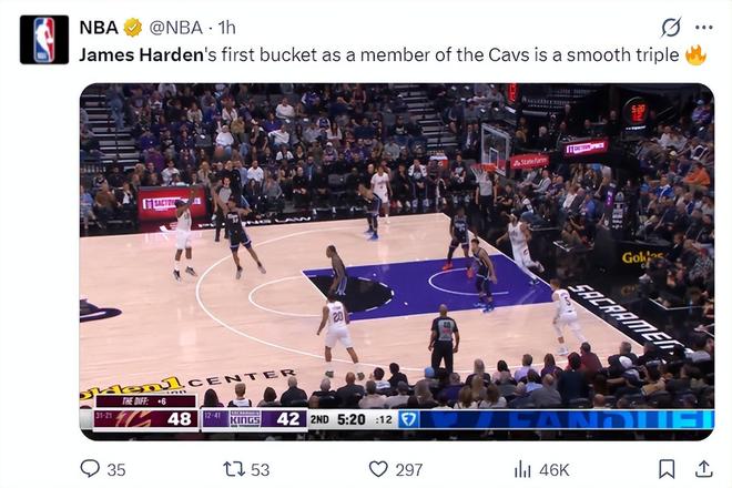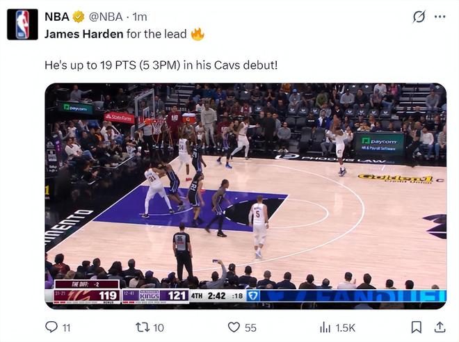 末节的哈登再度化身了救世主,连续三个三分球命中,终场前2分42秒的三分还帮助骑士完成反超,哈登也强行将自己的命中率拉回50%,哈登这个首秀是大放异彩了。