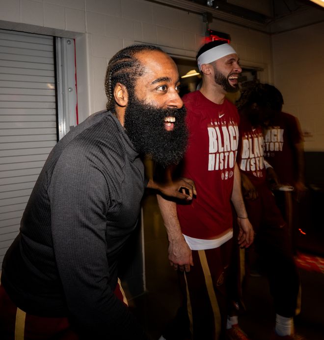 北京时间2月8日,詹姆斯-哈登迎来了骑士生涯的首秀,36岁的大胡子进入球馆之前那叫一个开心,他跟小南斯在球员通道相谈甚欢,感觉大胡子真的觉得自己迎来了夺冠窗口期,此役哈登也先抑后扬,全场比赛23+8(末节4中4拿15分)帮助骑士逆转国王。