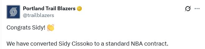 开拓者官宣一签一裁!西索科转正获两年合同吕佩尔为他腾出名额