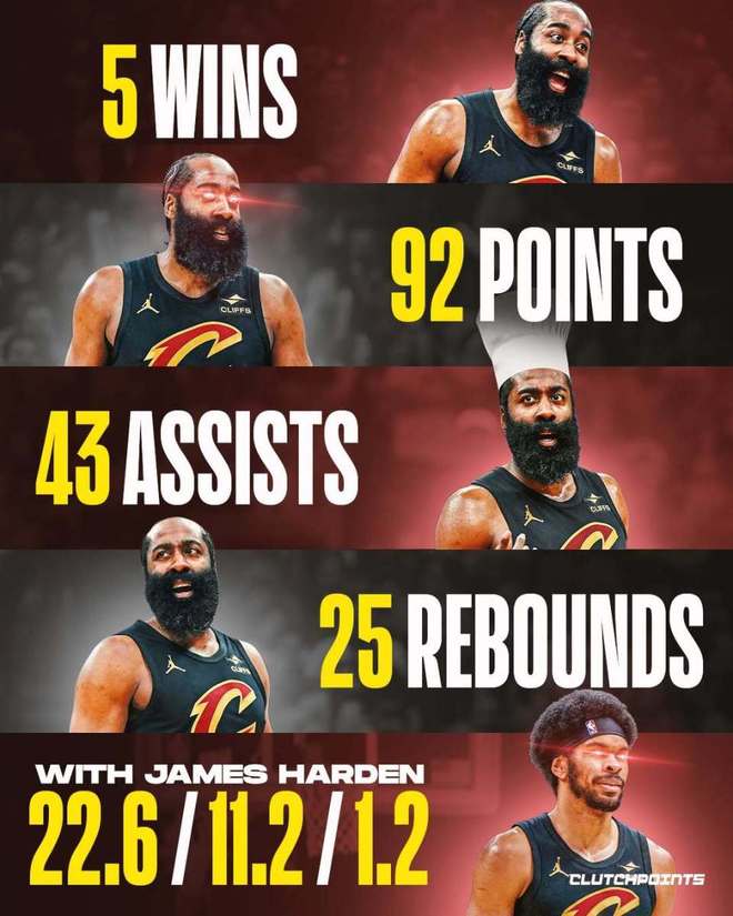 北京时间2月22日,美媒clutchpoints晒图感慨哈登加盟骑士的效应,并配文如下——