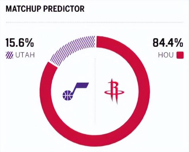 赛前,美媒ESPN对本场比赛进行了胜率预测,火箭队胜率高达84.4%,爵士胜率则仅有15.6% ,差距还挺明显。