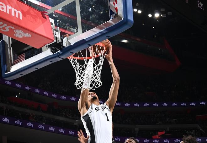 在输给马刺之后,活塞主帅比克斯塔夫接受采访感叹:“我们知道文班亚马有多出色,以及他能带来多大的影响,但这并不是一个人的表演。他们还有一群天赋异禀的外线球员。”这一战,文班亚马统治了末节比赛。他的手感并不好,全场16投6中,三分5中2,罚球8中7,得到21分。但是他凭借出色的防守和冲抢篮板能力影响了比赛。这一战,文班亚马收获17个篮板4次助攻1次抢断和6次盖帽,正负值为+13。