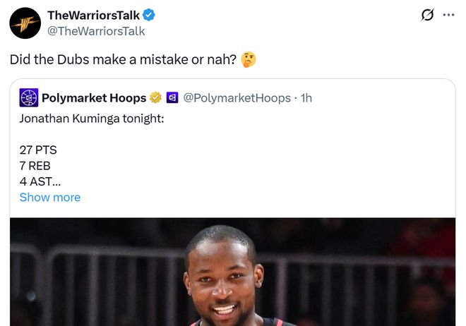 后勇士媒体TheWarriorsTalk也质疑到:“勇士队是不是犯了一个错误(交易库明加)?”