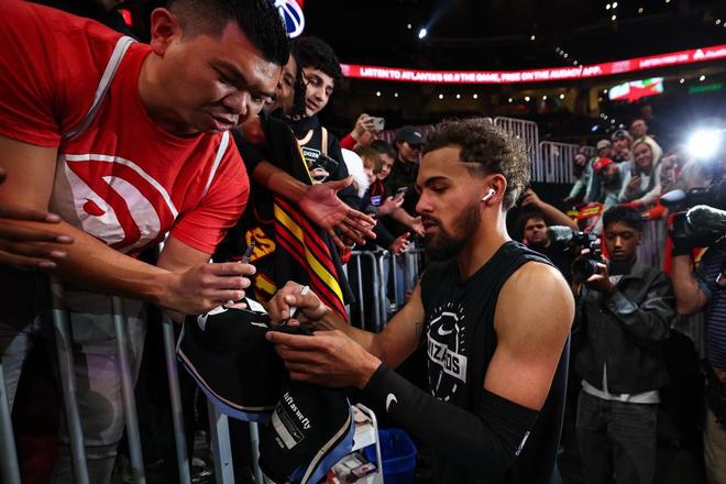 同时特雷杨赛后仍不忘为现场观战的老鹰队球迷签名、合照留念,并且通过视频方式为中国球迷送上新年祝福。