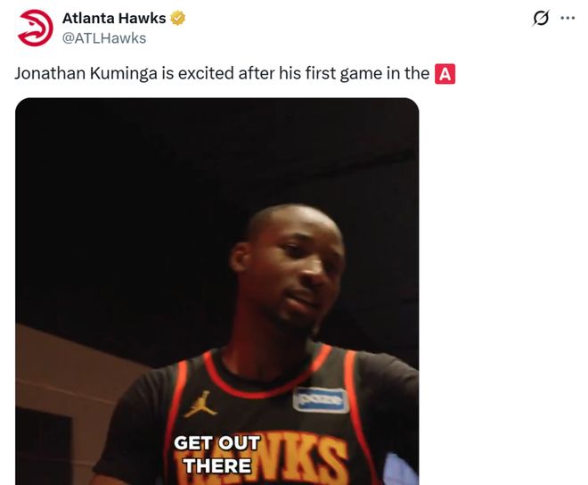 全场库明加替补出战24分27秒,12中9,三分4中3,高效轰下全场最高的27分,外加7板4助2抢断,正负值+16。 考虑到本场是其加盟老鹰队的首秀,无论是进攻端展现出的有无球能力兼备,内外开花的得分手段,还是防守端出色的篮板保护与积极的拼抢都值得为其打出一个满分。 凭借这样的表现,库明加也创造老鹰队史自2002年以来新援首秀得分新高,更是打破老鹰队史替补球员首秀得分纪录。