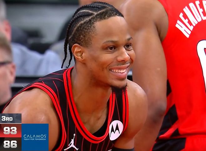 第四节一上来罗威攻防建功,开拓者12-4的进攻小高潮,领先15分了。转播镜头多次给到场下的杨瀚森,但这比赛始终无法失去悬念,开拓者又被追上来,还剩4分钟时,开拓者108-102公牛。开拓者扛住了公牛队的反扑,以121-112获胜,但小杨没捞着出场机会,对面的河村同样没能出场。在主力利拉德、阿夫迪亚、夏普以及克林根都缺阵的情况下,杨瀚森都没有获得上场时间,我们需要重新审视一下小杨的开拓者队内地位了。