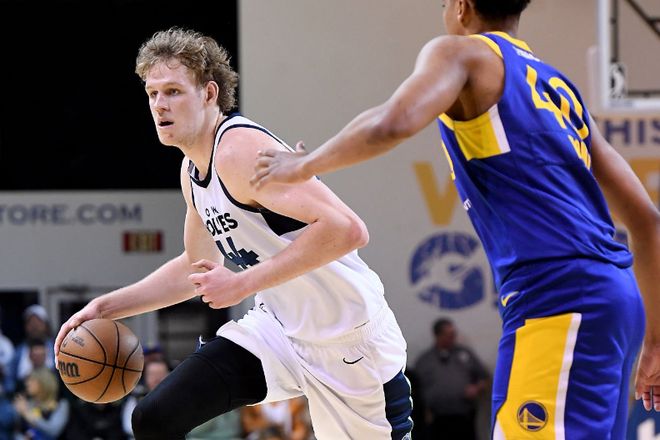 至少护筐能力相当不错,森林狼内线新秀完爆了开拓者二队内线