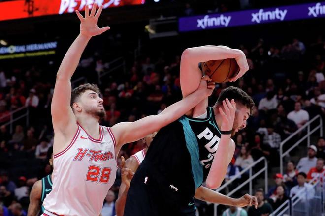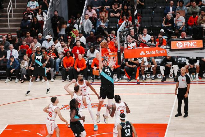 罗伯特威廉姆斯2罚不中,朱霍勒迪轰进3分球,开拓者随后连续外线打铁,休斯顿请求暂停。卡佩拉大帽韦斯利,韦斯利打成了2+0找回颜面,罗伯特威廉姆斯暴扣,开拓者打出了9比0的攻势。伊森补篮得分为火箭打破得分荒,朱霍勒迪强攻篮下得手。第3节打完,火箭以77比82落后,开拓者单节以26比20领先,霍勒迪单节11分。 末节决战,格兰特被封盖,谢泼德外线打铁,塞布尔轰进3分球,申京命中2+1,谢泼德2罚全中。格兰特上篮得手,申京回敬3分球。格兰特隔扣阿门汤普森,申京进攻犯规,个人出现第5次犯规被换下。阿门打成了2+0,开拓者连续2次进攻24秒违例。阿门抛投得手,随后完成暴扣,斯普利特请求暂停。 阿门汤普森与谢泼德