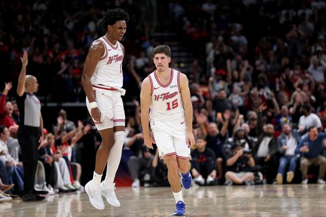 北京时间3月7日,NBA常规赛继续进行。火箭坐镇主场与开拓者展开对决,两大超人气球队的较量充满了看点。休斯顿爆冷不敌勇士,此役背靠背作战,火箭众将渴望触底反弹。该场比赛是双方本赛季的第4次交手,前3战波特兰取得了2胜1负的战绩。中国籍球员杨瀚森被下放至发展联盟,利拉德赛季报销、阿夫迪亚、穆雷、夏普伤停,斯普利特的首发五虎是朱霍勒迪、亨德森、格兰特、卡马拉与克林根。小贾巴里史密斯、范弗利特、泰特伤停,亚当斯赛季报销,乌度卡调整了阵容,杜兰特携手阿门汤普森、申京、伊森、谢泼德出任首发,芬尼史密斯担任替补。两大豪强,在此役展开了激烈的厮杀。 杜兰特20+8+5+8失误,火箭13分逆转开拓者!阿门创神迹,申京15中11! 全场比赛回顾 首节开打,申京低位单打得分,朱霍勒迪快速上篮打进还以颜色,卡马拉外线命中2球,阿门暴扣予以回应。格兰特2罚全中,申京补篮得手,谢泼德轰进3分球。亨德森2罚1中,卡马拉抢断申京,格兰特、朱霍勒迪携手远投发难,阿门扣进两球予以回应。卡马拉2罚1中,格兰特、卡马拉继续外线发力,卡佩拉空接打进,格兰特回敬2+1。杜兰特中投不进,阿隆霍勒迪打成了2+1。 阿门与格兰特、克雷伊奇卡位