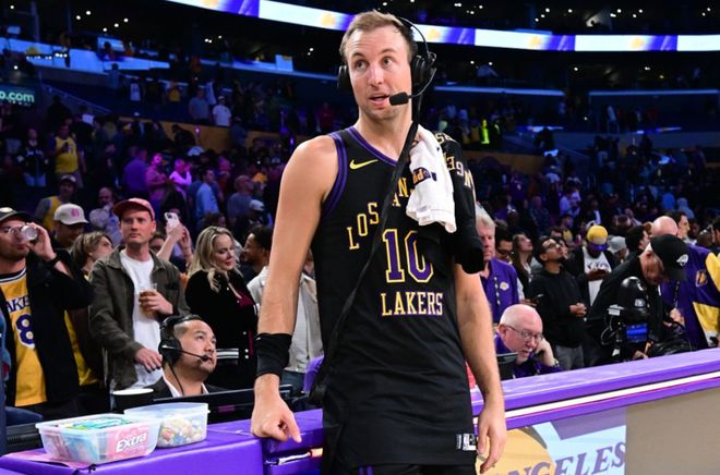 加盟湖人后,他已有4场比赛得分上双,并在周六对步行者的比赛中再度打出亮眼表现,砍下15分。主教练雷迪克将这位老将后卫当作无球跑动射手使用,为他设计战术跑出投篮机会,或是把他放在能做出处理球的位置。 尽管湖人拥有众多球星,但作为一名三分命中率超过50%的射手,肯纳德为球队进攻增添了新的维度。在为湖人出战13场比赛后,这位29岁球员分享了他如何与球队找到节奏。 “过去几场比赛,我们的球转移做得越来越好。”肯纳德说,“对我来说,就是有空位就做好出手准备;没有机会时,就保证进攻流畅,不让节奏停滞。不管是我突破到内线寻找更好的机会,还是分球外线。只要有机会,就去创造进攻机会和优势。到目前为止,我觉得自己融入得非常好,也很期待我们团队能继续前进、一起成长。这真的很有趣。”
