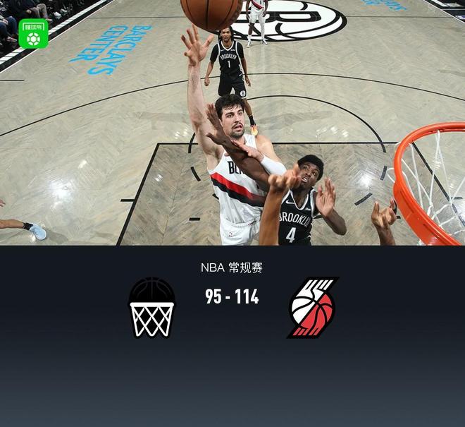 开拓者7人上双11495轻取篮网,阿夫迪亚18+6+5,克林根14+11