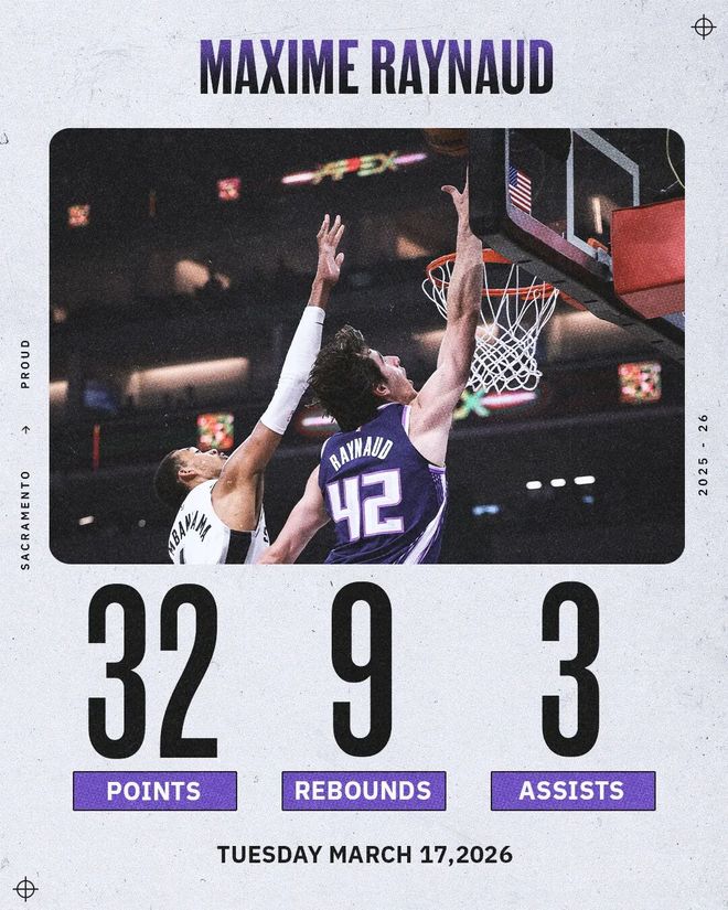 但,这场比赛,雷诺打出了非常不错的表现:全场出战41分钟,投篮25中13,三分5中2,罚球4中4,得到32分9篮板3助攻1盖帽。 单场32分、25次投篮出手、13次投篮命中全部刷新了雷诺的生涯最高,此前他的最高分是29分。 比赛内容也非常丰富,雷诺不管是面对谁,都非常擅长利用抛投来终结——哪怕是面对自己的法国老乡、国家队队友、本赛季的DPOY大热文班亚马。