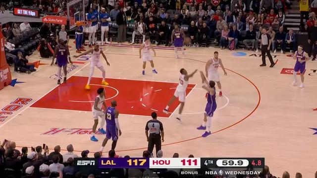 相比于上一场比赛,今天火箭算是打得非常不错了,杜兰特被限制,申京和阿门都算发挥出不错的水准,尤其是阿门的冲框,湖人拿他真的是一点办法都没有。小贾的干拔手感很好,谢泼德扔进了三个三分,全场比赛打完湖人还比火箭多失误两次,所以这球一直打到了关键时刻。