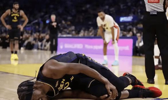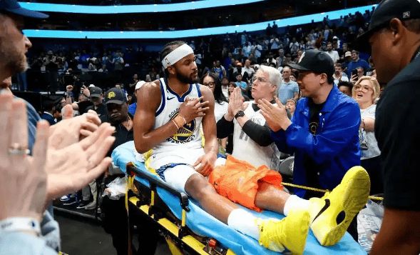 3月24日,达拉斯美航中心,加时赛还剩58.5秒。勇士后卫摩西·穆迪抢断后快攻扣篮,左膝却在腾空瞬间发出异响——髌骨错位、膝盖塌陷,他痛苦倒地,被担架抬出场。库里掩面跪地,全场沉默。