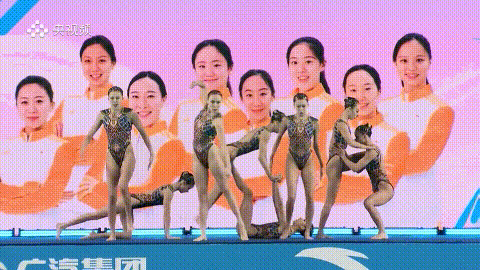 比赛精彩瞬间 来到大湾区的舞台,在前一日进行的集体技术自选及集体自由自选比赛中,李岫宸与队友配合默契,分别以294.7008分、342.8588分牢牢占据第一。今日集体技巧自选比赛,姑娘们依旧完成得非常出色,获得230.4069分,最终携手登上最高领奖台。 |