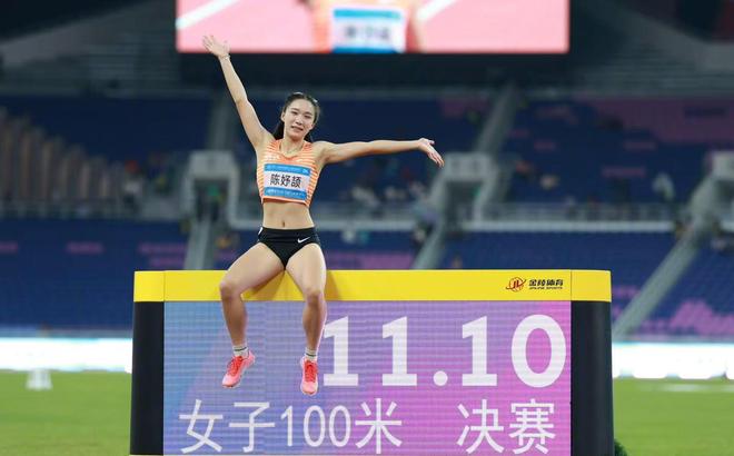 陈妤颉少了两位强大的竞争对手,决赛来临。陈妤颉起跑反应时间0.176秒属于全场倒数第二慢,她的开局并不占优。老将韦永丽在前半程跑在第一位。不过,陈妤颉展现了强大的后半程冲刺能力,她逐渐超越韦永丽,甚至还拉开了距离,最终以11秒10的优异成绩夺冠。韦永丽以11秒37的成绩获得亚军。史琳琪以11秒38获得季军。