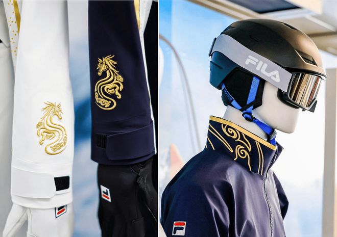 而这款雪服的颜值也相当惊艳,FILA打造了两套配色方案,分别适配不同场景,并且结合中国农历马年以「马到成功」的金属线绣花和「圆点必胜雪花」印花点缀其中,可见品牌的用心。