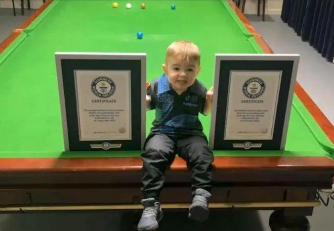 神了!两岁娃还没球桌高,却拿下两个台球世界纪录网友:感觉他能虐我...