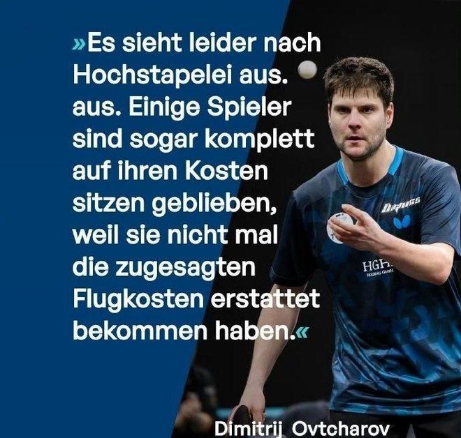 奥恰洛夫爆料,部分参加老瓦杯的运动员,甚至要全程自掏腰包买来回飞机票。 德国名将奥恰洛夫透露,所有受影响选手的实际到账金额均不足约定数额的10%,“没有任何一名选手收到接近合同承诺金额的出场费,有些队友连承诺报销的机票费用都未兑现,全程自掏腰包参赛。” 据了解,包括奥恰洛夫、巴西选手雨果·卡尔德拉诺、韩国选手张禹珍在内的多位名将,已联合向国际乒乓球联合会(ITTF)及世界乒乓球职业大联盟(WTT)发出公开信,正式指控以尼尔斯·奥特斯塔德为代表的赛事运营方存在系统性违约行为。