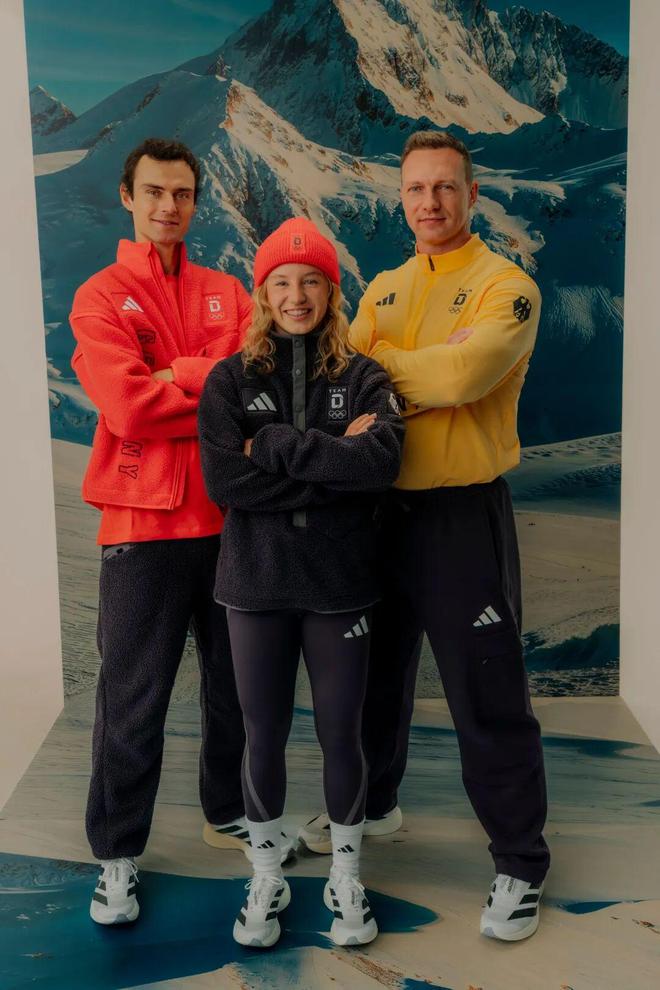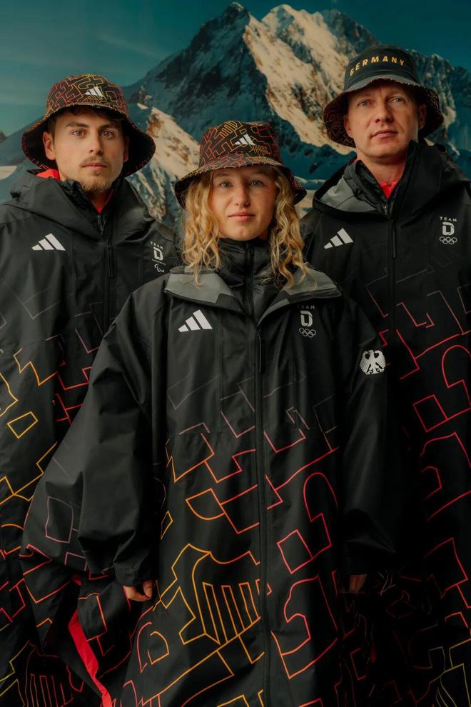 04 极简机能风 重在竞技感 在皑皑白雪间,简单干脆的实用主义往往最能传出克制的高级感。抛弃多余的装饰,重在纯粹的竞技感与硬核的工业美学。 德国 德国代表团的整体风格就非常扎实,由Adidas打造。在色彩运用上,玩转了国旗的黑、红、金三色,款式利落合身,非常适合运动。