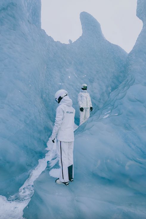材质上依然保持了硬核水准,专业的 GORE-TEX Pro 面料,能够从容应对高山的变幻风云。冰山里拍摄的时尚大片更是氛围感拉满,非常迎合当下的审美流行。
