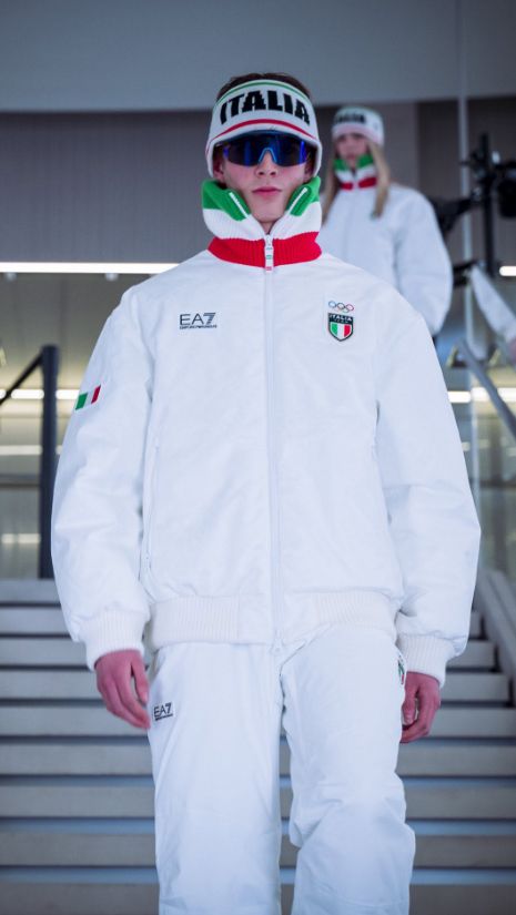 全白色的主调象征着阿尔卑斯山,领口、拉链边缘等细节处嵌入了意大利国旗的绿、白、红三色,十分点睛。