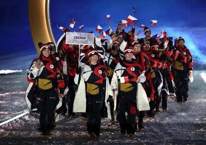 捷克 捷克队开幕式上的装备,由本土品牌ALPINE PRO设计和提供。融入本土艺术家元素,颜色包括红、金、黑、白、蓝、黄等多色混搭,就是两个词:抽象。