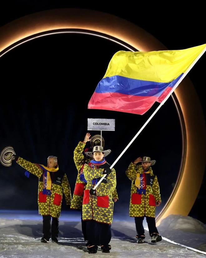 话说南美国家来冬奥会,一个比一个会抢镜。哥伦比亚队这套装备一出场,瞬间把冬奥开幕式整成了“热带嘉年华入侵阿尔卑斯”现场!