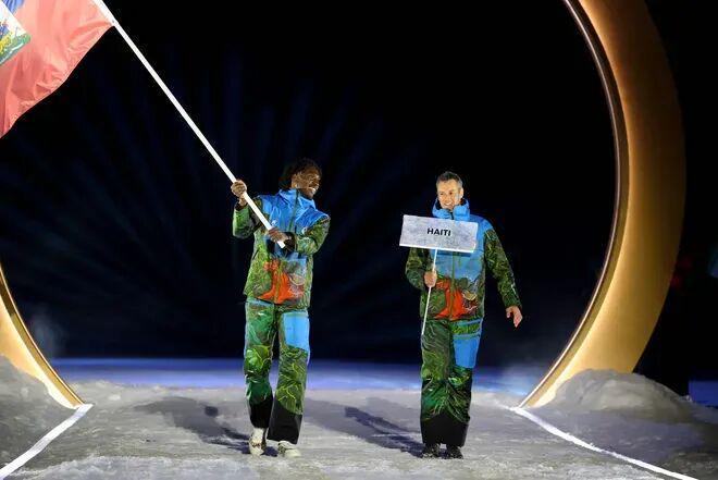 海地 热带国家来参加冬奥会,画风果然不一般,海地代表团的装备由意海混血设计师 Stella Jean操刀,简直太抢镜了。