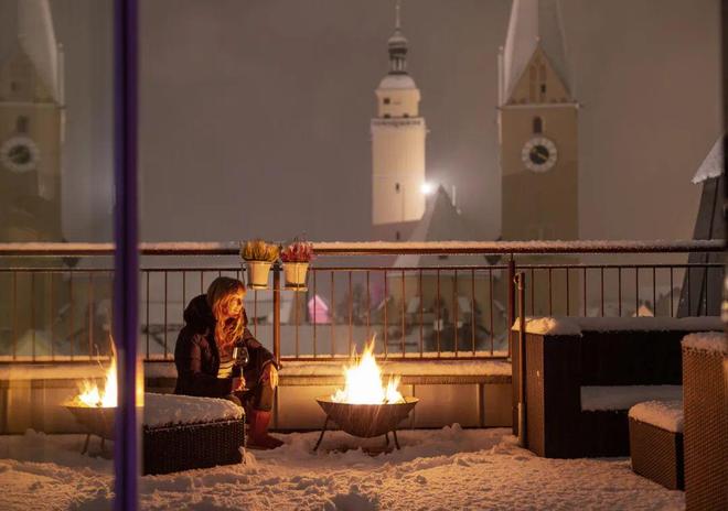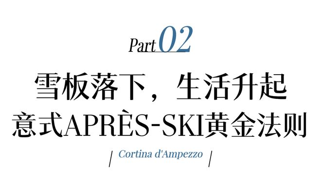 ▌蓝调时刻下的科尔蒂纳 雪板落地,科尔蒂纳的生活才正要登场。 傍晚五点左右,整个小镇进入“黄金时刻”。夕阳为雪山披上一层金红色的外衣,远处的山峰剪影如画,岩壁的轮廓在光影中逐渐柔化,白天的锋利感被缓慢收起。滑雪者陆续下山,小镇的节奏随之放慢,切换为社交沙龙模式。 aperitivo文化是科尔蒂纳Aprés-ski的核心。aperitivo原本是意大利人餐前饮用的开胃酒,如今已演变成一种社交仪式。Aprés-ski源自法语,如今已成为欧洲雪山度假的标志性文化,但在不同国家有着截然不同的风格与气质。奥地利的Aprés-ski是啤酒厅的狂欢,施拉格音乐震天响,人们举着啤酒杯肆意舞动,热闹非凡却少了几分优雅;法国的Aprés-ski是时髦的代名词,DJ打碟搭配香槟蹦迪,灯光闪烁间尽显潮流气息,却总少了点人间烟火;而意大利科尔蒂纳的Aprés-ski,将aperitivo文化、阿尔卑斯山珍与雪山露台完美融合,在松弛与精致之间找到了绝佳平衡。
