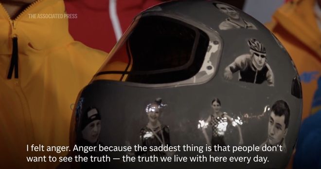 「冬奥上的一些选择」 奥运从来不只是奖牌的归属,更是无数个体在职业与人生交汇点的一种选择。米兰冬奥会正在进行,除了奖牌榜不断变化,还有一些关于荣誉、尊严、热爱的选择。 01 “这是尊严的代价” 宁愿被禁赛,他也不愿脱下头盔 26岁的乌克兰钢架雪车运动员赫拉斯克维奇来到米兰,但不能参赛,因为他佩戴了一个特别的头盔。 这个头盔上印着俄罗斯入侵乌克兰期间丧生的运动员同伴照片,其中一些人是他的朋友。国际奥委会表示,该头盔违反了奥林匹克规则,不能在比赛中佩戴,提议他佩戴黑色臂章、黑丝带作为替代方案,或在奥运村、采访区展示头盔。 在国际奥组委多方劝说下,赫拉斯克维奇没有考虑任何形式的妥协。被禁赛后,赫拉斯克维奇在社交媒体上回应,“这是我们尊严的代价”。