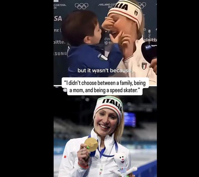 04 “我没有在滑冰和做妈妈间做选择” 一种大女主爽文 有一种大女主剧情是,35岁生日当天拿下个人奥运首金,还是意大利首金,还打破了奥运记录。 意大利老将弗兰切丝卡·洛洛布里吉达就是这个大女主。她在米兰冬奥会速度滑冰女子3000米比赛中,以3分54秒28夺金。这是她四次参加冬奥会的首枚金牌,也是东道主意大利在本届冬奥会上的首枚金牌,她还将这个项目的冬奥会纪录提高了2.65秒。 更富有剧情的是,她的这个赛季并不顺利,赛前绝非外界看好的夺冠热门,冬奥会前她还感染了病毒,期间一度考虑过放弃。但在米兰,在儿子和丈夫都来到现场看比赛的日子,在自己生日当天,她夺冠了。 洛洛布里吉达赛后说,“我没有在滑冰和做妈妈间做选择”,就像她一边接受采访,一边和儿子搞怪。
