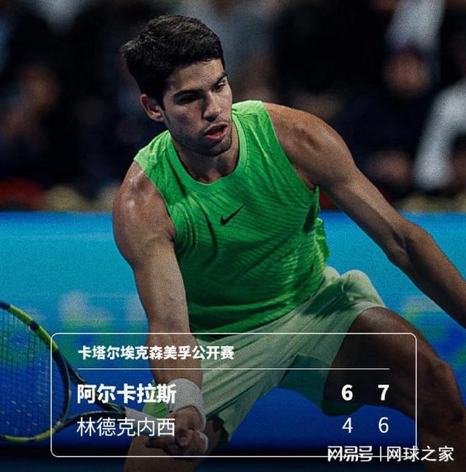 首秀的头号种子、世界第一阿尔卡拉斯在次盘化解了法国人林德克内西的两个盘点,最终以6-4 7-6(5)击败对手,取得多哈站开门红。这是阿尔卡拉斯获得的硬地第150胜,解锁了新纪录。接下来,他将对阵另一位法国球员鲁瓦耶。
