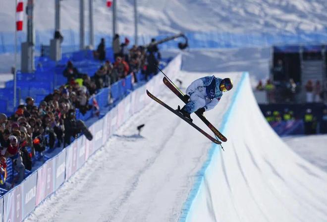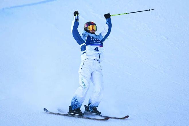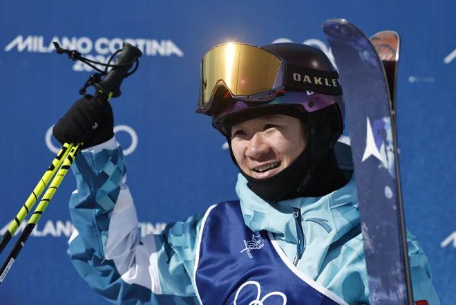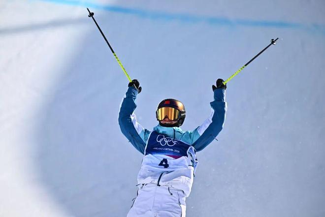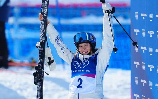 当地时间2月22日,在意大利利维尼奥举行的米兰-科尔蒂纳冬奥会自由式滑雪女子U型场地技巧决赛中,中国选手谷爱凌、李方慧包揽冠亚军。 ↑谷爱凌在等分区庆祝。