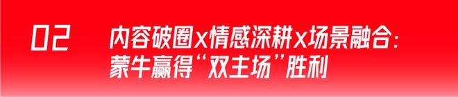 图源:蒙牛乳业 从传播效果来看,2月5日至2月7日,#开幕还得看张艺谋#、#用中国剪纸打开米兰冬奥#等7个热搜连续上榜,3天内视频观看量高达2.3亿次。 不仅如此,蒙牛还基于对消费者新年“求好运、盼祝福”的情感洞察,进一步在春晚黄金时段与全国影院同步投放了《开幕》短片,结尾的一声“祝全球华人马年马上牛”,让品牌祝福自然地融入节日氛围。比起其他品牌生硬的广告植入,这种如春风化雨般的真挚祝福,恰恰彰显了品牌的“真心”。