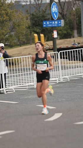 没有了张水华的追赶,南京的比赛变成黄菲一个人的战斗。好在,她身前后还有李新旺和“匪哥”的保驾护航。半程后,黄菲一边把配速提到332-333,一边观察自己的身体状况。 赛道35公里有一处折返,把选手分为两侧。黄菲回忆那时自己的心态,“体感还可以,看了一下对面,水华在我一公里后面多一点,自己觉得冠军稳了,于是心态就放松了一点。”但由于体感尚佳,她仍维持在332的配速前进。