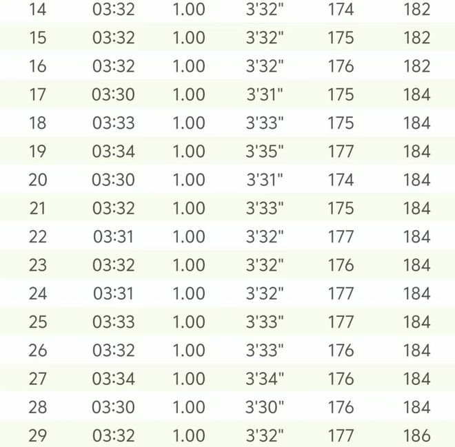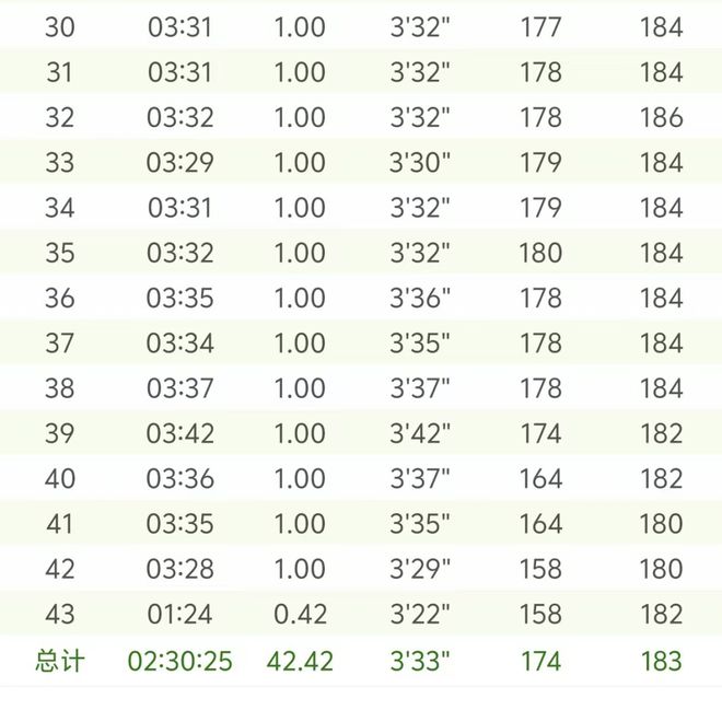黄菲全场配速数据 38-40公里的掉速让她错失了打开230的机会 顶了2公里后,黄菲迎来本次南京之行最难的一道坎——37公里有一处上坡,开始带痛苦面具的她心里也在不断退缩,“反正PB也没希望,再加上有一点点累,想想算了拼吧。”李兴旺回忆,那时黄菲的配速一度掉出340开外。尽管他这时给黄菲加油鼓励,但因为风的原因,黄菲没清晰地得到对方的信息。 是黄菲自己反应过来的。她说,“到40公里,我用时是2小时22分,计时牌显示还有最后2公里,我一算,用不了8分钟,我很有希望PB的,于是稍微稳了稳,又往前跑。”她笑着说,支撑最后2公里还能加起速,就是靠“想想冬训这么久,离家千里又千里,能拼还是拼一下。”在第六次上高原的这个冬天,她月跑量超过700公里。 PB221的李新旺最后时刻不停地给黄菲“打鸡血”,“现在能快一秒就赢一秒,顶一下不掉速可以跑进230。但最后时刻,体力还是不免有些透支。”