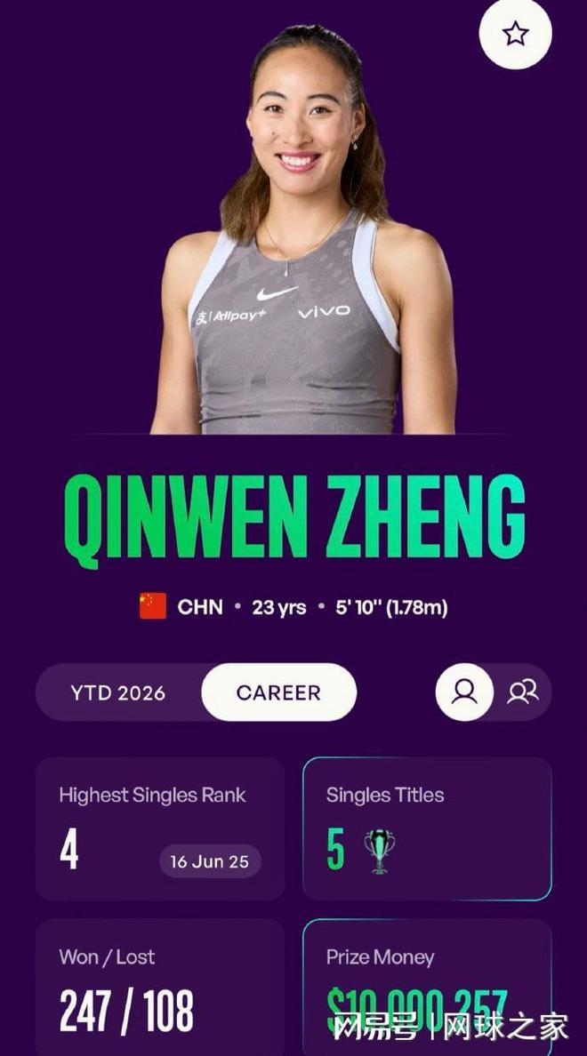 中国一姐郑钦文确认出战这项赛事,同时,还有一条关于小郑同学的好消息传来,这就是WTA官网最新数据显示,在印第安维尔斯站之后,郑钦文的职业生涯总奖金突破了1000万美元,成为继李娜和张帅之后,第三位达成这一成就的中国大陆球员。恭喜她!