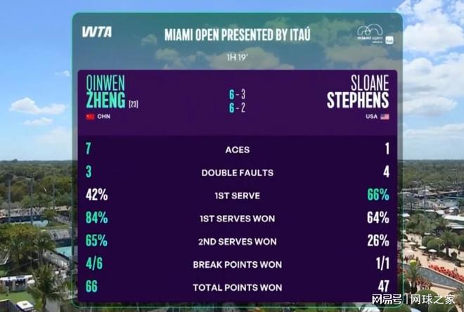 在这场焦点大战开打前,考虑到斯蒂芬斯已经打了一场比赛,而郑钦文是首次登场亮相,并且比赛还因雨被推迟了一天,有人还担心小郑会不会步了王欣瑜等人的后尘,重演印第安维尔斯中国球员无一人闯过正赛首秀关这样的悲剧。 特别是郑钦文在首盘第五局率先遭到破发后,更是加重了大家的这种担心。让人欣慰的是,郑钦文在第六局迅速实现回破后,赛前被认为的危险对手斯蒂芬斯,瞬间锋芒全无,郑钦文以连下三局之势以6比3拿下了第一盘的胜利。 第二盘郑钦文更是彻底将前美网冠军给打崩了,开局就轰了斯蒂芬斯一个4比0,最终以6比2结束战斗,终结了中国网球军团在单打赛场上的七连败之际,也拒绝了个人在北美阳光双赛背靠背一轮游。