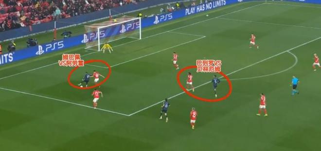 这一次姆巴佩眼看着有打击对手禁区肋部的机会,结果巴列罗限制住贝林厄姆接应线路,随后边后卫回防从背后断球姆巴佩成功。