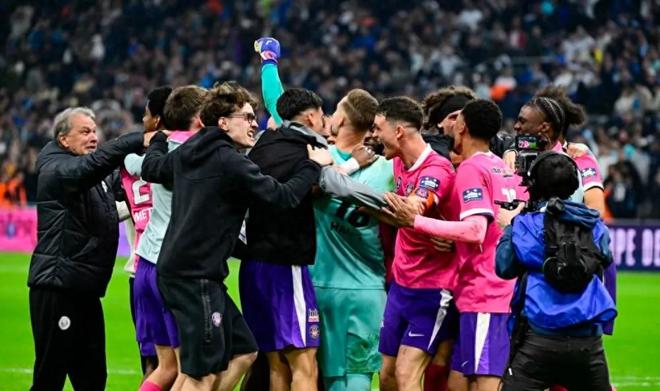 家人们!足坛这一夜彻底沸腾了!多场焦点赛事同步上演,冷门、绝杀、点球大战、绝境扳平,各种疯狂剧情轮番轰炸,看得人肾上腺素飙升,每一场比赛都充满了意外,谁能想到,一夜之间,四大赛事居然爆出这么多让人意想不到的名场面!今天咱们就一次性唠个够,看看这一夜的足坛,到底有多疯狂! 先从法国杯1/4决赛说起,马赛对阵图卢兹,本以为是一场实力悬殊的较量,结果却踢出了跌宕起伏的剧情,最终还爆出了大冷门!比赛一开始,马赛就率先掌握主动权,很快就获得了点球机会,格林伍德不负众望,点球稳稳命中,马赛早早取得领先优势,看起来拿下比赛悬念不大。