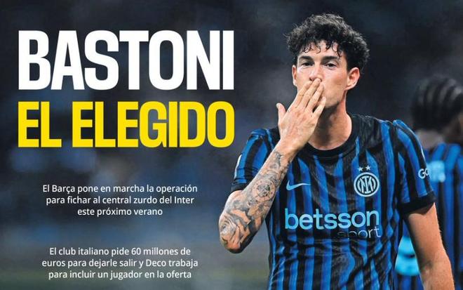每体:国米对巴斯托尼要价6000万欧,巴萨准备报价现金+球员