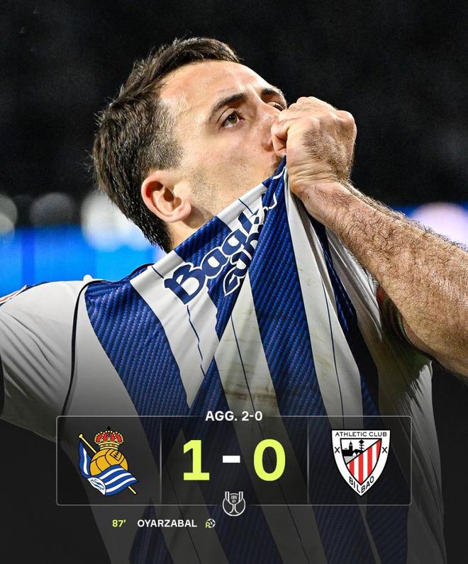 反观皇家社会,1球领先打得很有耐心,第87分钟,奥亚萨瓦尔在禁区内制造点球机会,并亲自主罚命中,皇家社会1-0领先,总比分2-0,最终比分也定格在此,皇家社会完成双杀,强势挺进决赛。 他们将在决赛中对阵淘汰了巴萨的马德里竞技。这将是一场硬碰硬的终极对决,一边是整体性极强的皇家社会,一边是以铁血著称的马竞,这也是西蒙尼时隔5年,最接近斩获冠军奖杯的时刻。