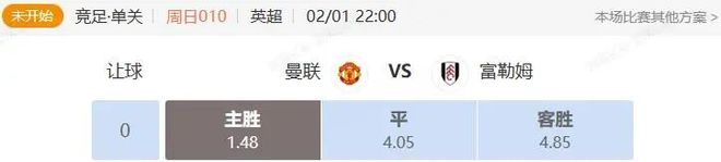 网易红彩今日挑选专家李俏洋和吴永亮带来英超+西甲两场赛事解析,更多精彩方案可下载“网易红彩”App进行查阅! 1.专家:李俏洋 竞足 周日010 英超 曼联VS富勒姆 开赛时间:2026-02-01 22:00:00