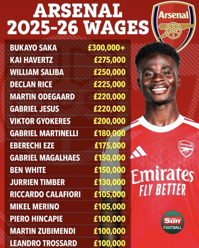 榜单分析 这份周薪与合同信息把阿森纳的薪资分层拉开了:最高一档是萨卡,周薪约34.3万英镑+;随后是哈弗茨约31.5万英镑、萨利巴约28.6万英镑,赖斯、厄德高、热苏斯都在25万英镑上下。20万英镑左右的梯队里,约克雷斯约22.9万英镑、马丁内利约20.6万英镑、埃泽约20.0万英镑,承担的是常规主力与关键轮换的重量。 合同年限也有明显差异:萨利巴与约克雷斯到2030年,赖斯、厄德高、哈弗茨集中到2028年,加布里埃尔与卡拉菲奥里到2029年。相对靠近的节点主要在2027年(萨卡、热苏斯、马丁内利、特罗萨德)与2026年(因卡皮耶),这些人的续约谈判或去留选择更容易提前成为焦点。 |