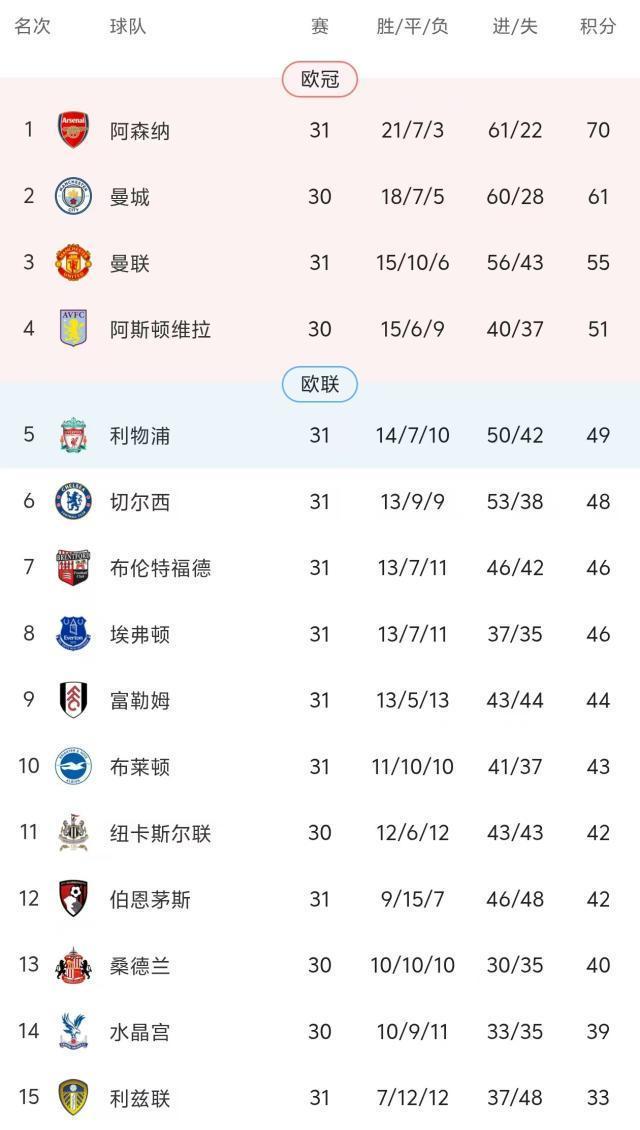 体坛周报全媒体记者 闫羽 让五大赛!当同一个周六,位列英超第5的利物浦和第6的切尔西都比较窝囊地输球,很难不让各路媒体异口同声地打出了相似标题。这是个有趣的现象,但也并非首次出现。在过往赛季,我们已经经历过不止一次的“争四”变“让四”,而今年之所以改称“让五”,不过是因为英超极有把握再获5个欧冠席位。 这种现象论根源,主要还是因为所谓“传统强队”在当季走了下坡路,软硬实力不济,到需要比拼耐力的时刻坚持不住。所谓“让”,其实就是想争冠争不了,退而求其次也难以在艰苦时刻稳住局面。那么问题来了:真的都在“让”吗?有没有在“争”的?有,当周六战果出炉,那支来自利物浦的球队就看到了一丝进军欧冠的希望——我们说的当然不是红色的那一队。